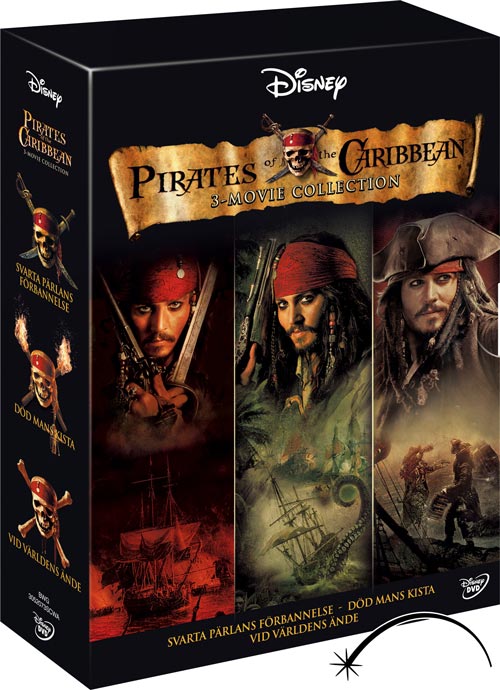 På tal om Piratesboxen så tycker jag det är riktigt dåligt av Svenska Disney att inte lägga manken till och göra en ordentlig Pirates box med minst 6 skivor och massor med extramaterial - med tanke på att Pirates är så populärt som det faktiskt är. Det kommer säkert komma en riktigt häftig limited edition extended special extaordinary box (hehe) i usa, men här i Svearike får vi bara en liten tunn pappersbox med filmer man kan redan kan köpa separat. Trist.